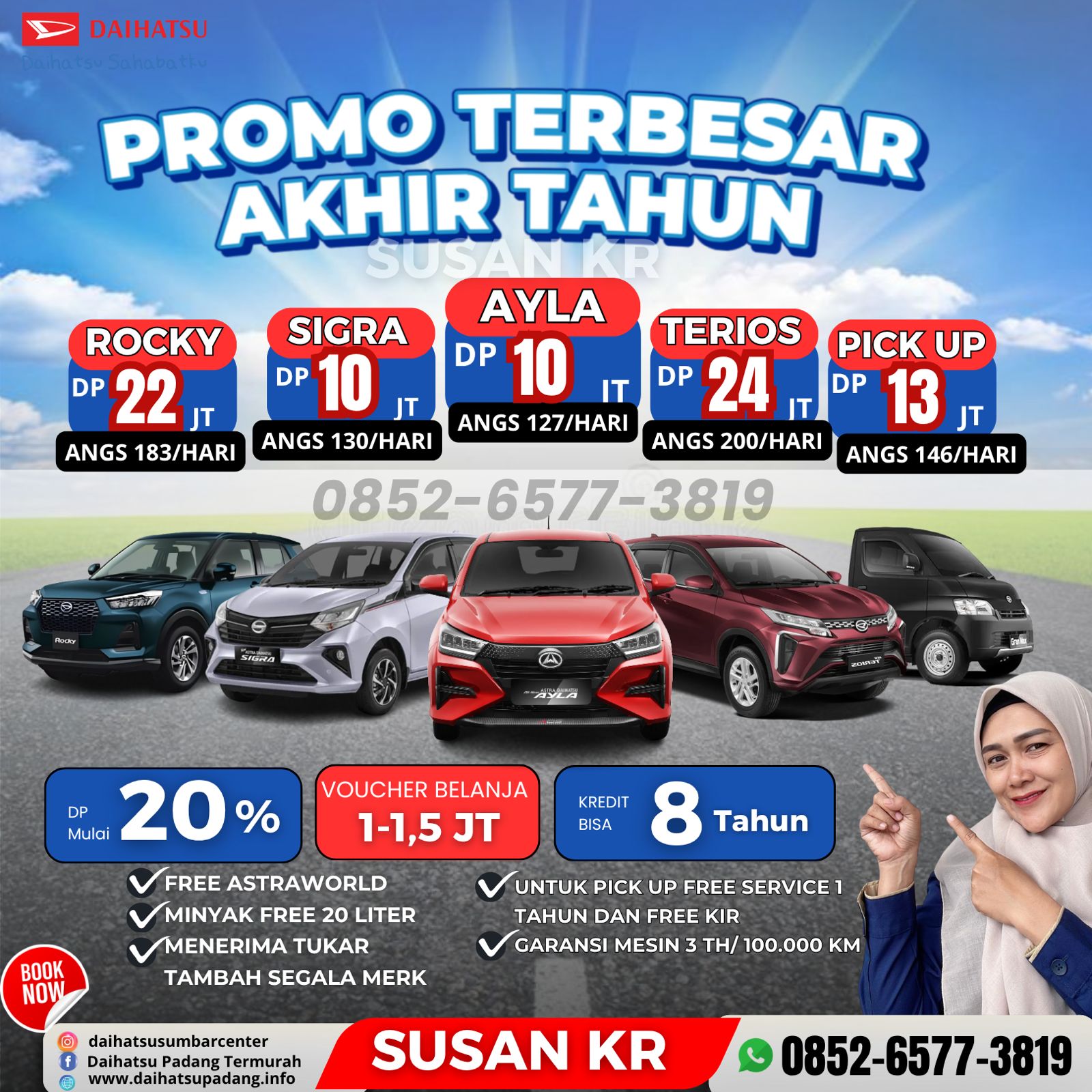Saya SUSAN KR Senior Sales Counter, Saya Menjual Semua Jenis Mobil Daihatsu Seperti Daihatsu Ayla, Sigra, Sirion, Xenia, Rocky, Terios, Luxio, Granmax Minibus, Granmax Pickup. Dapatkan Promo Dan Harga Terbaik Untuk Pembelian Mobil Daihatsu Anda Disini.